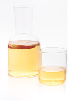 Sada karafy na vodu z borosilikátového skla (800 ml) a sklenice na pití (300 ml). V kraftové papírové krabici. Vhodné pro studené i teplé nápoje, lze použít i jako karafy.