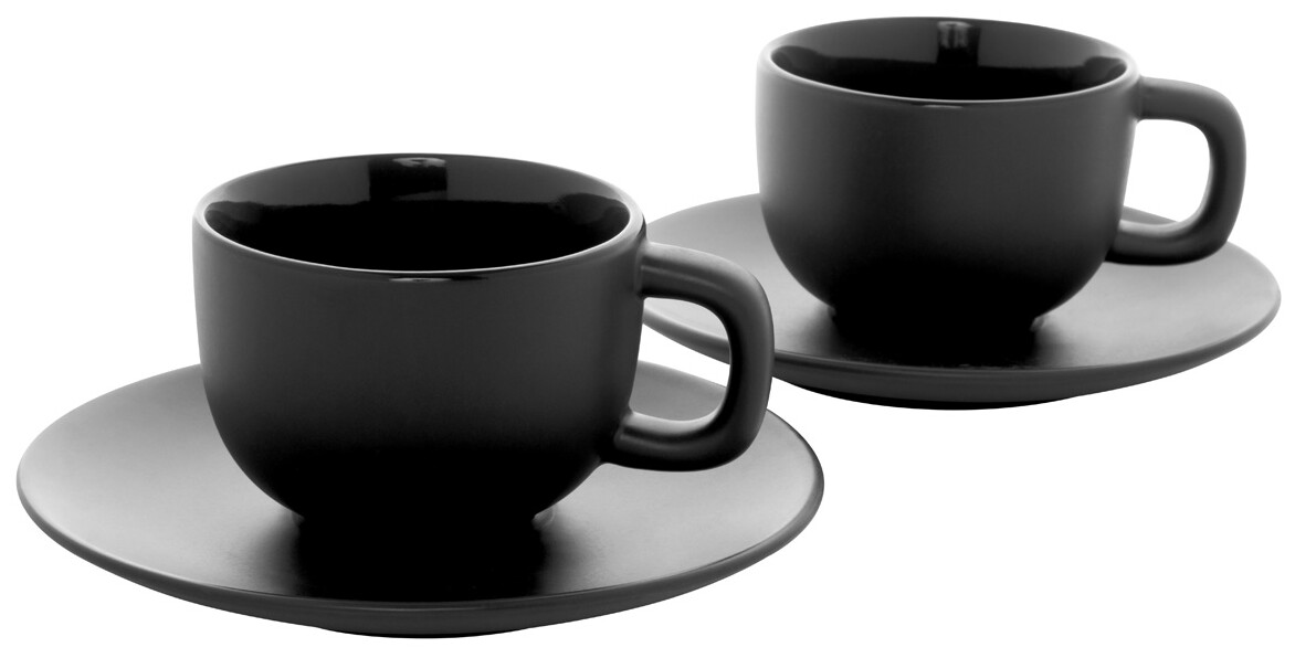 Vysoce kvalitní keramická sada šálků na cappuccino se 2 šálky a podšálky. S matnou vnější a lesklou vnitřní povrchovou úpravou. 200 ml. V kraftové papírové krabici.