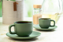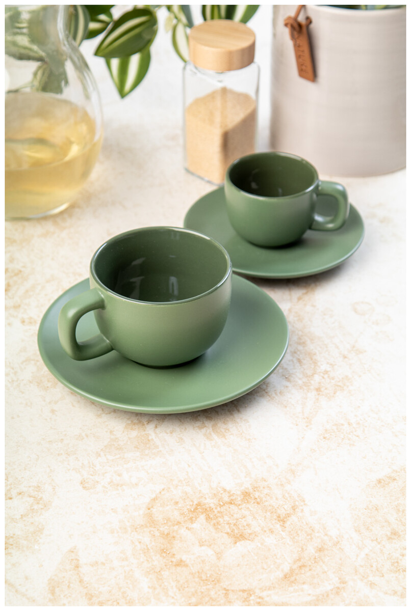 Vysoce kvalitní keramická sada šálků na cappuccino se 2 šálky a podšálky. S matnou vnější a lesklou vnitřní povrchovou úpravou. 200 ml. V kraftové papírové krabici.