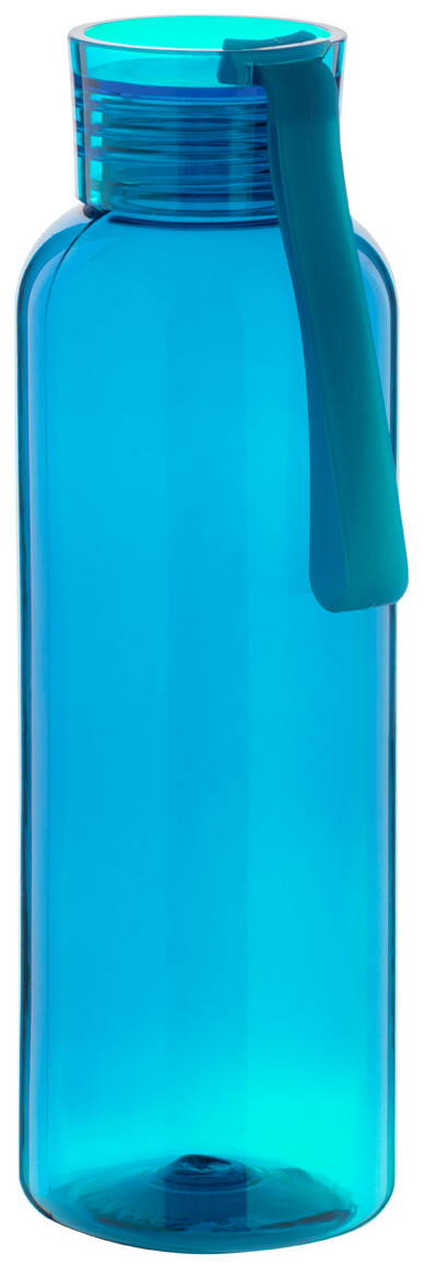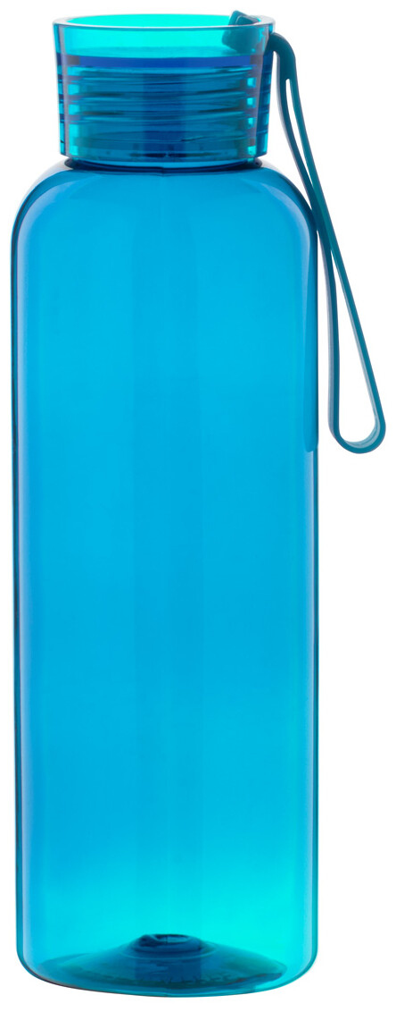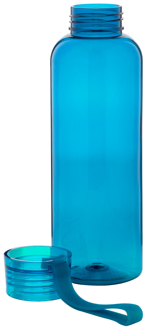 Láhev RPET s víčkem v odpovídající barvě a silikonovým popruhem, 500 ml. Nevhodné pro sycené nápoje.