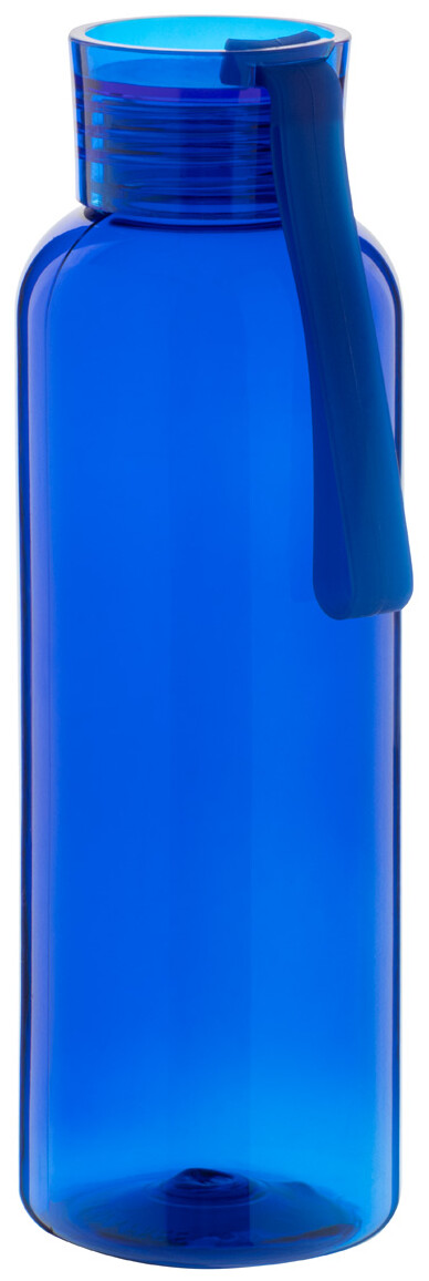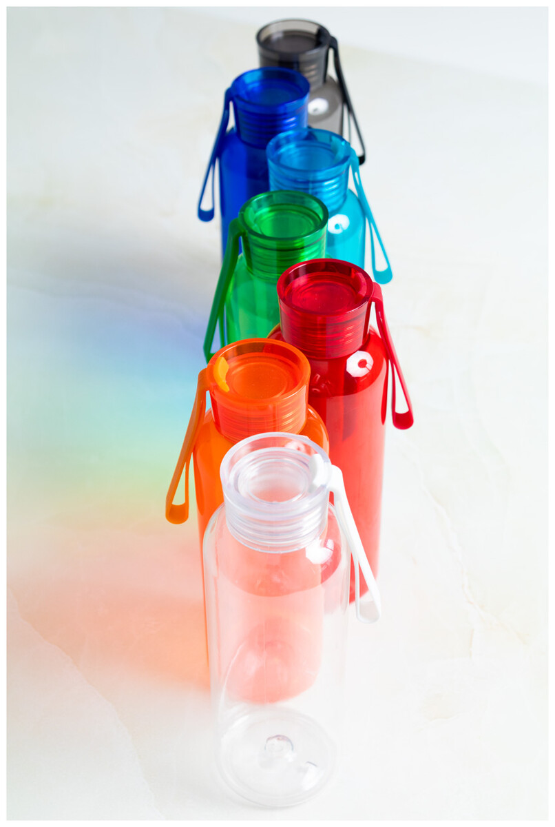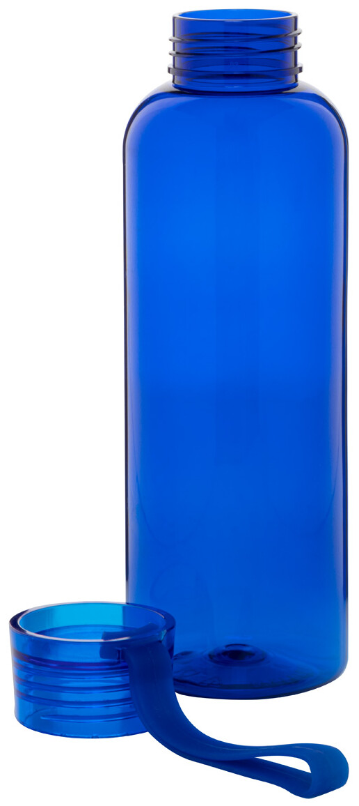 Láhev RPET s víčkem v odpovídající barvě a silikonovým popruhem, 500 ml. Nevhodné pro sycené nápoje.