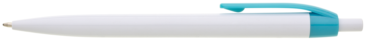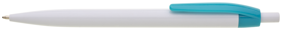 Plastové, kuličkové pero LIDO má bílé tělo a tyrkysový klip. Má náplň X-20 (106mm), modře píšící.