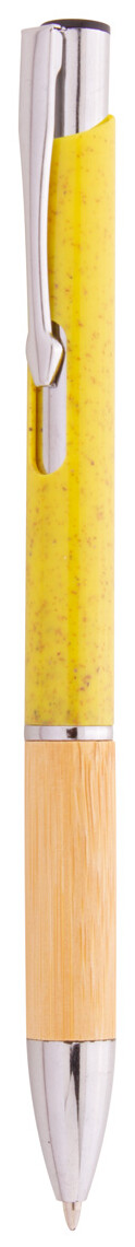 Ekologické plastové kuličkové pero z pšeničné slámy s bambusovým úchopem a kovovými částmi. S modrou náplní.