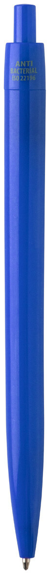 Plastové kuličkové pero s antibakteriálním tělem. Obsahuje přísadu nano stříbra, která zabraňuje růstu bakterií na těle pera. Se stiskacím mechanismem a modrou náplní. V souladu s ISO 22196: 2011.
