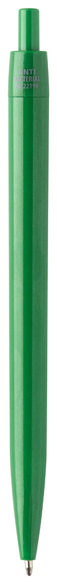 Plastové kuličkové pero s antibakteriálním tělem. Obsahuje přísadu nano stříbra, která zabraňuje růstu bakterií na těle pera. Se stiskacím mechanismem a modrou náplní. V souladu s ISO 22196: 2011.