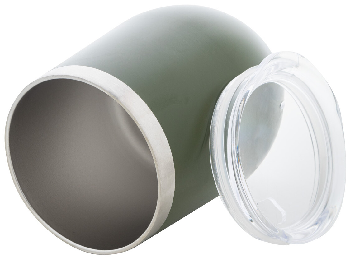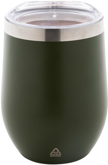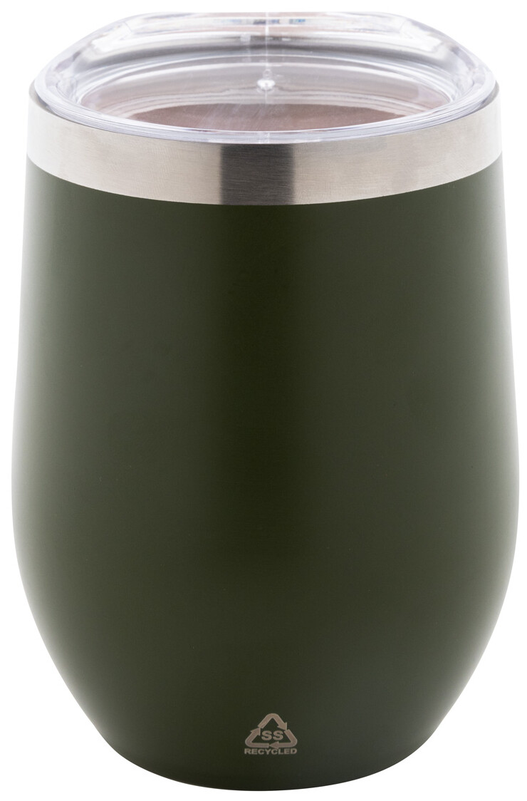 Dvoustěnný termo hrnek z recyklované nerezové oceli s plastovým víčkem na pití. 350 ml.