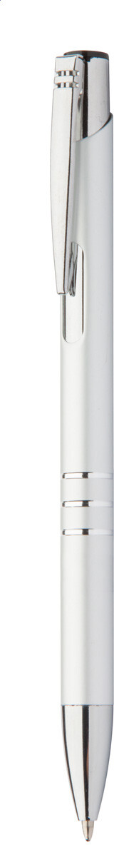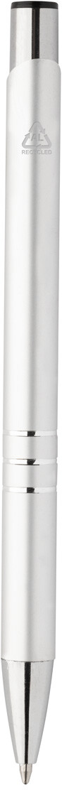 Kuličkové pero z recyklovaného hliníku s metalickým povrchem a modrou náplní.