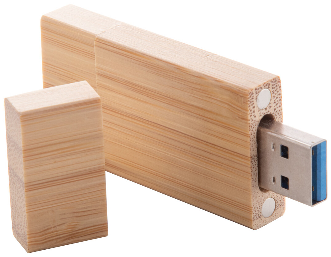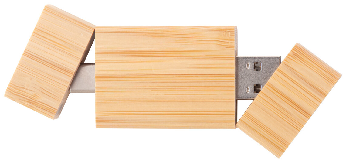 OTG USB flash disk v bambusovém pouzdře s pamětí 8/16/32 GB. S konektory USB a USB-C. V kraftovém papírovém sáčku. USB 2.0.