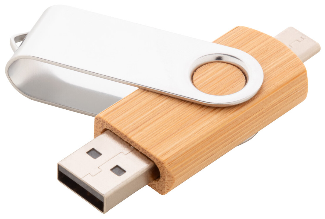 USB flash disk Twist OTG v bambusovém a kovovém pouzdře s pamětí 4/8/16/32 GB. S připojením USB a USB-C. V kraftové papírové krabici. USB 2.0.
