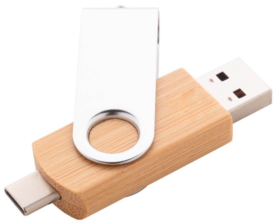 USB flash disk Twist OTG v bambusovém a kovovém pouzdře s pamětí 4/8/16/32 GB. S připojením USB a USB-C. V kraftové papírové krabici. USB 2.0.