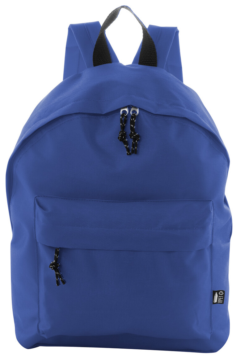 RPET batoh s hlavním prostorem na zip, přední kapsou na zip, polstrovanými zády a ramenními popruhy. Polyester 600D RPET, s výrazným štítkem RPET.