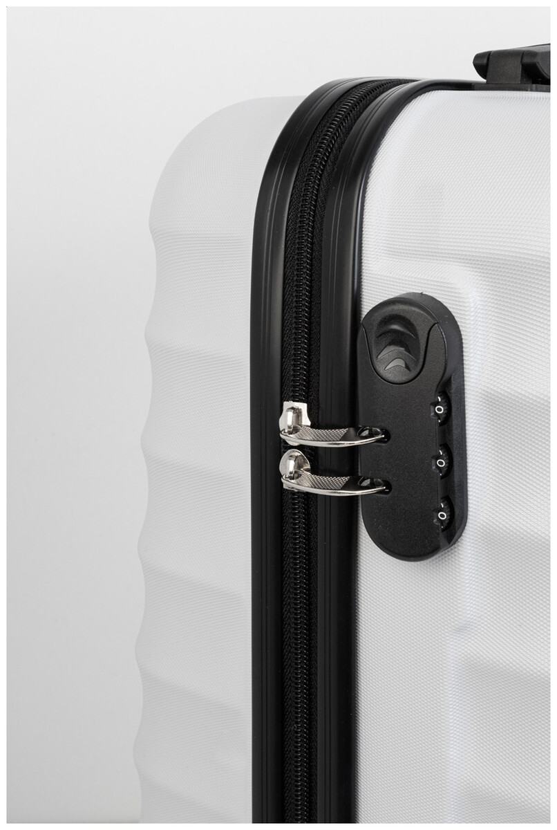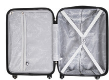 20palcová příruční taška na kolečkách s pevnou skořepinou z materiálu RPET se 4 kolečky, teleskopickou rukojetí a kombinovaným zámkem. S vnitřní podšívkou z RPET a elastickými upevňovacími popruhy. S kovovou destičkou pro gravírování loga