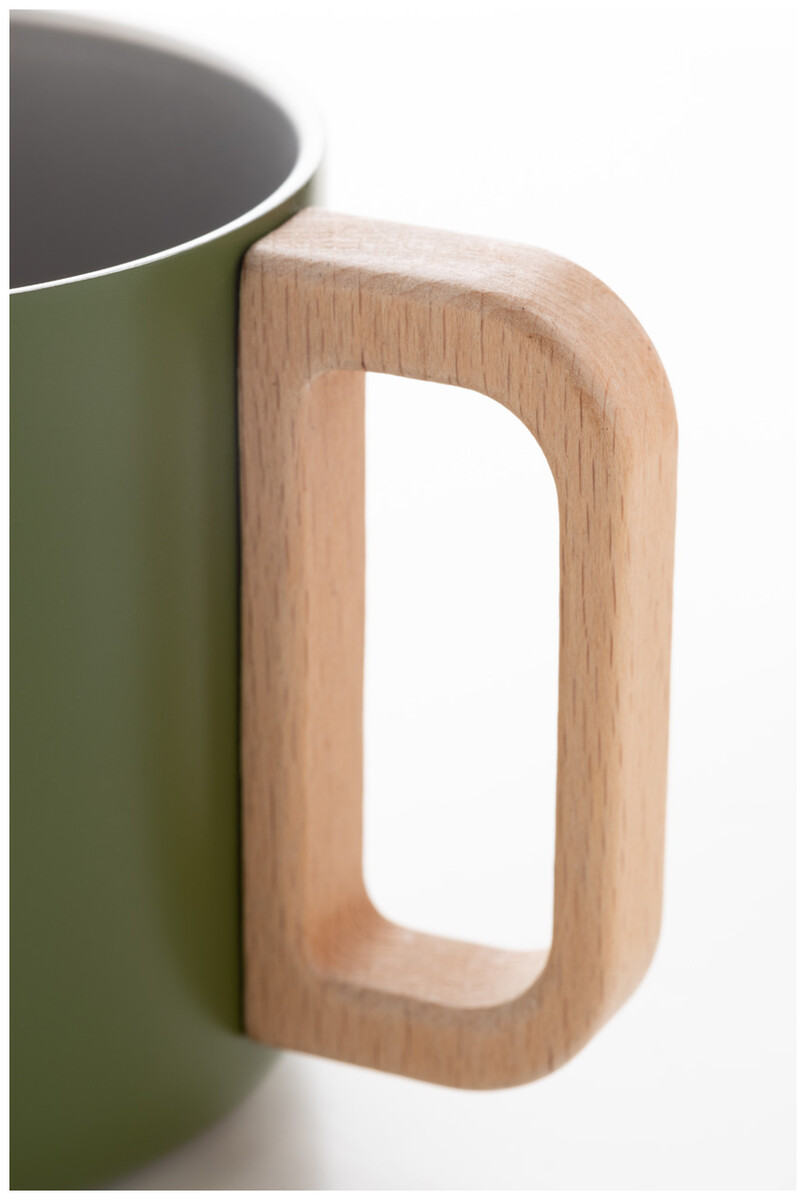 Dvoustěnný termo hrnek z recyklované nerezové oceli s dřevěným uchem. 350 ml.