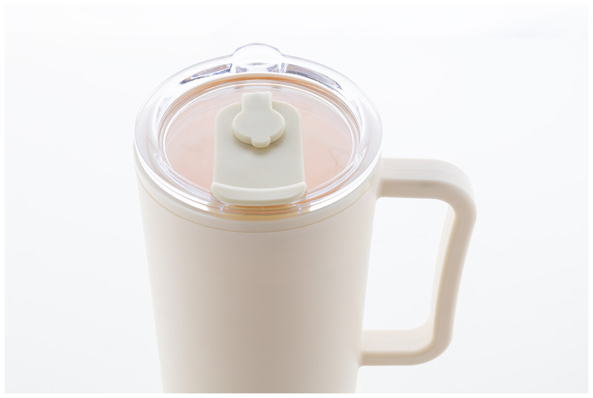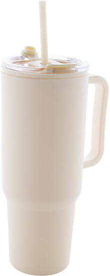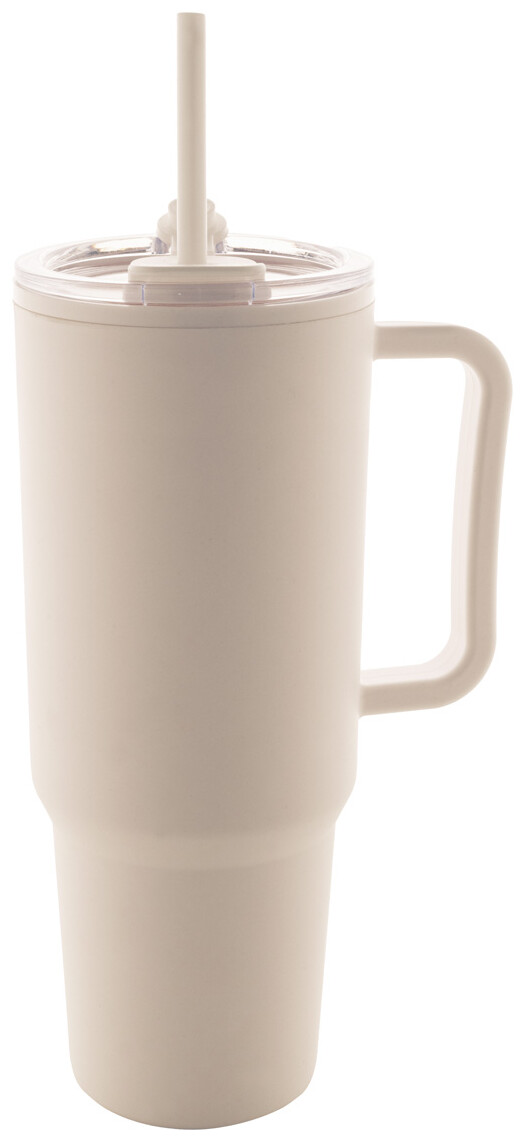 Dvoustěnný termo hrnek izolovaný PP plastem s víčkem na pití a brčkem. 1100 ml.