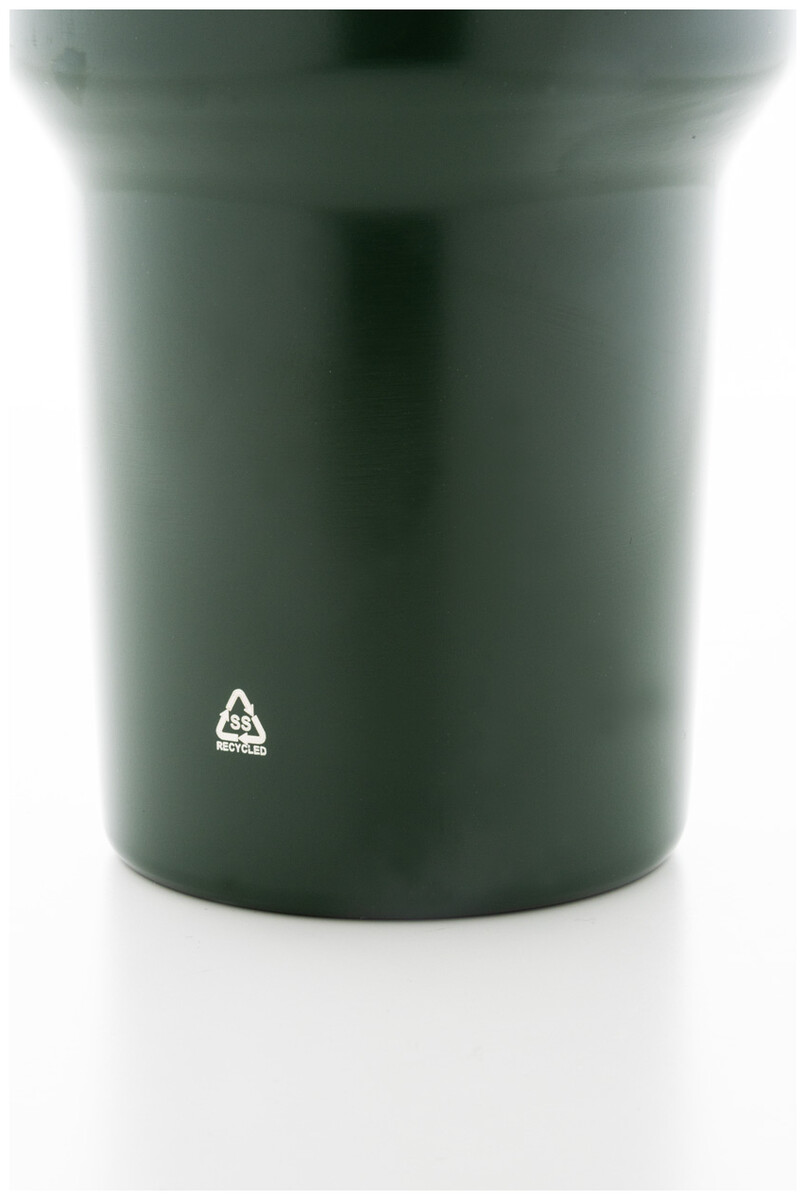 Dvouplášťový vakuově izolovaný termo hrnek z recyklované nerezové oceli s PS víčkem na pití a PP brčkem. 1200 ml.