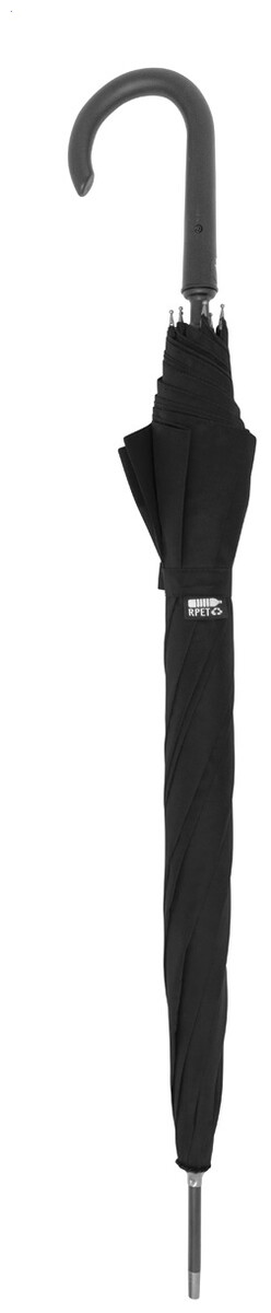 Automatický větruodolný deštník s 8 panely, sklolaminátovým rámem, kovovou tyčí a zakřivenou ABS rukojetí. Pongee 190T RPET. S výrazným štítkem RPET.