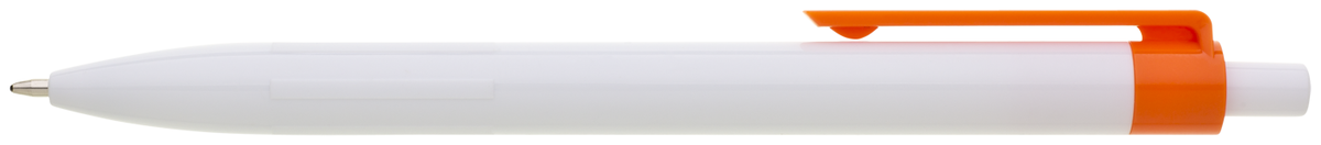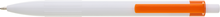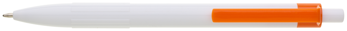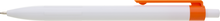 Plastové, kuličkové pero BIARE má bílé tělo, profilovaný úchop a oranžový klip. Náplň X-20 (120mm), modře píšící.