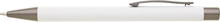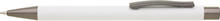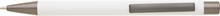 Kovová propiska CAGERI SOFT s hnědo-černými doplňky, s bílým pogumovaným povrchem. Velkoobsahová modrá náplň. Na bílém povrchu propisky jsou místy drobné tečky.