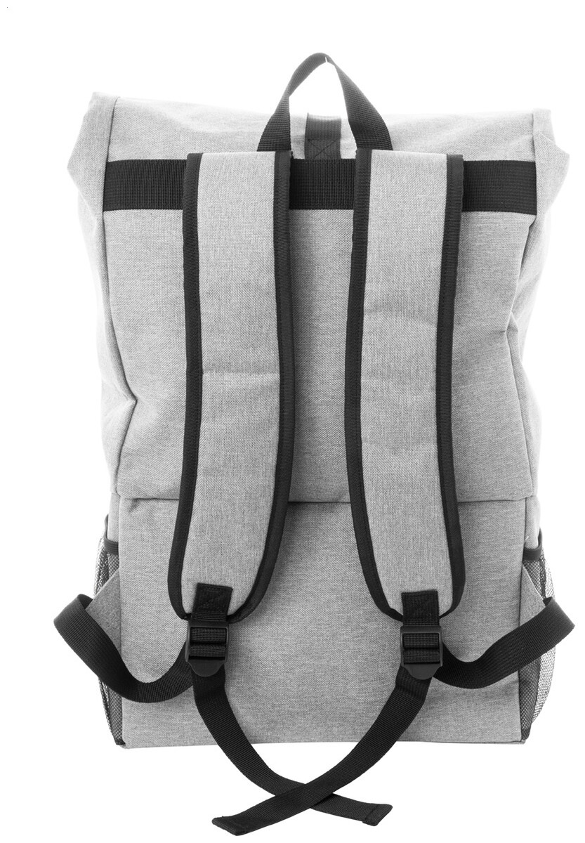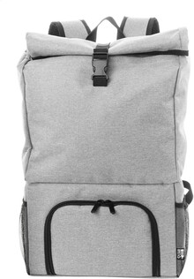 Rolltop RPET chladící batoh s PEVA polstrovanou chladicí přihrádkou na zip na jídlo. S hlavní přihrádkou na sponu, přední kapsou na zip, bočními síťovanými kapsami a polstrovanými ramenními popruhy. 600D RPET polyester s výrazným štítkem RPET.