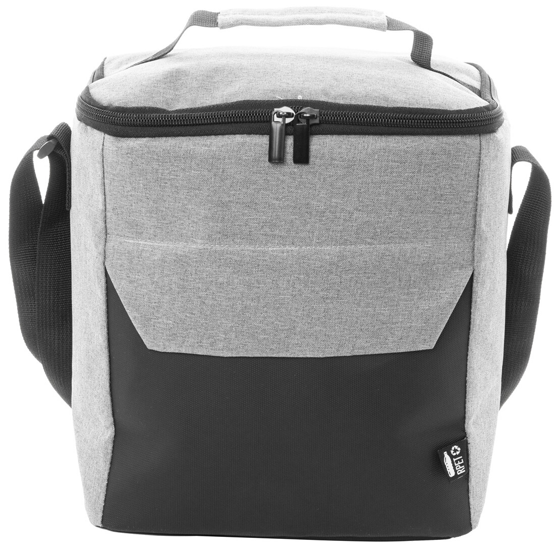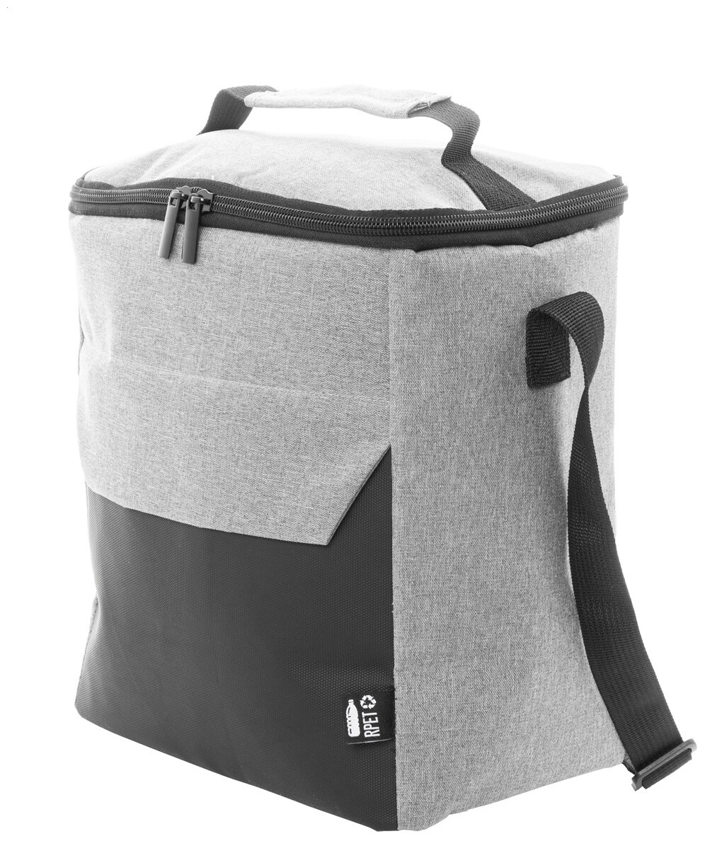 Chladicí taška na zip z RPET s detaily potaženými PU a PEVA vycpávkou. S rukojetí, nastavitelným ramenním popruhem a malou přední kapsou. 600D RPET polyester s výrazným štítkem RPET.