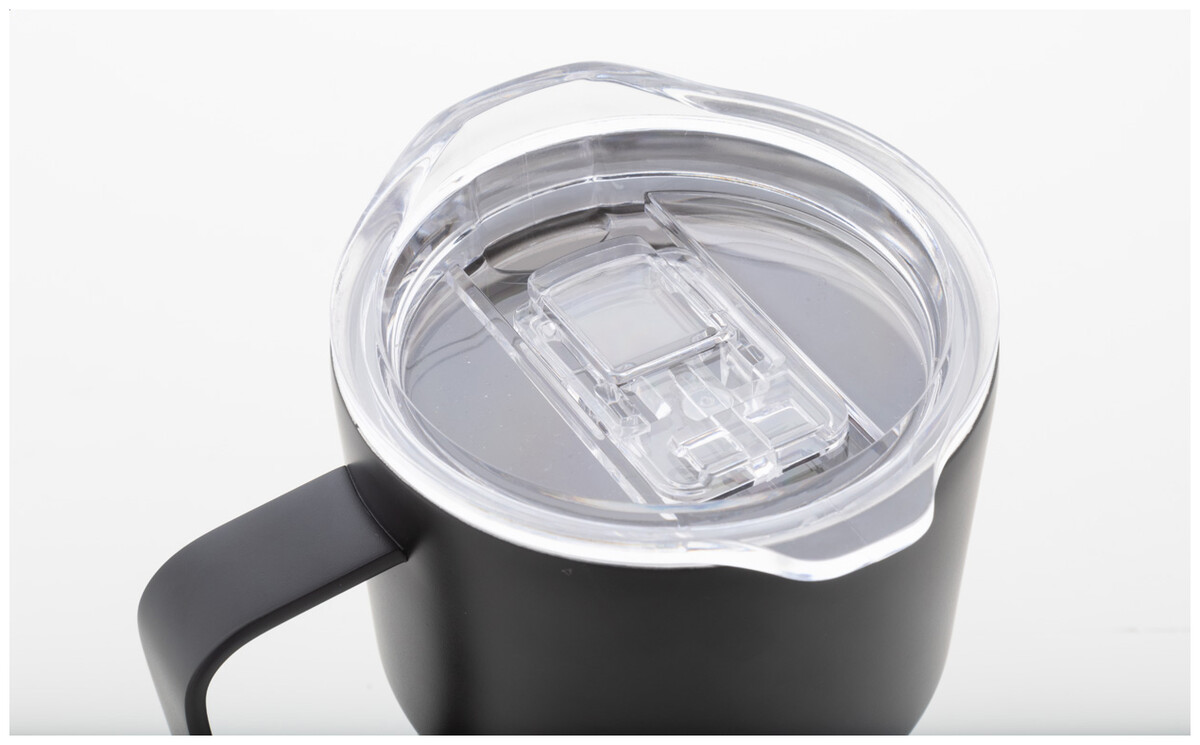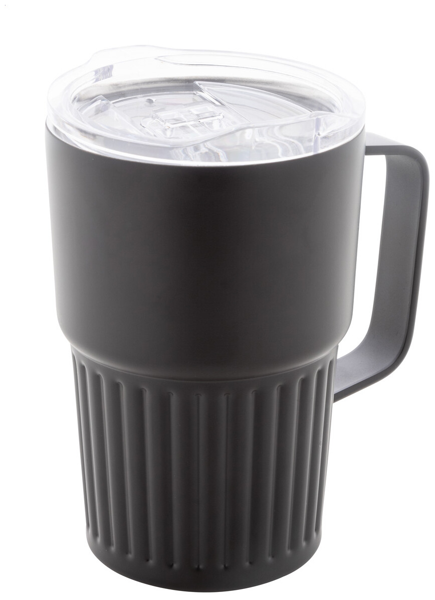 Dvoustěnný termo hrnek z recyklované nerezové oceli s víčkem na pití z ABS plastu. 470 ml.