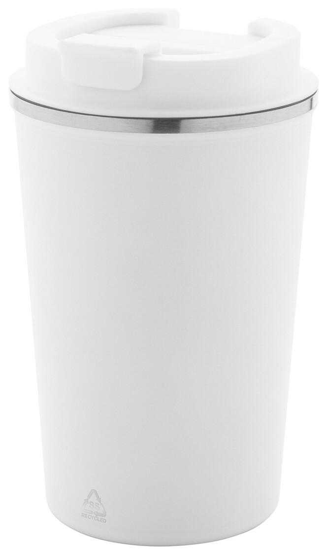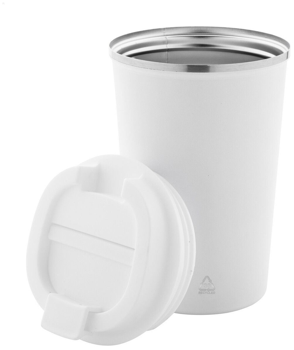 Dvoustěnný termo hrnek z recyklované nerezové oceli s víčkem na pití z PP. 350 ml.