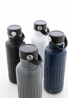 Dvoustěnná vakuově izolovaná láhev z recyklované nerezové oceli s PP plastovým přepravním víčkem. 500 ml.