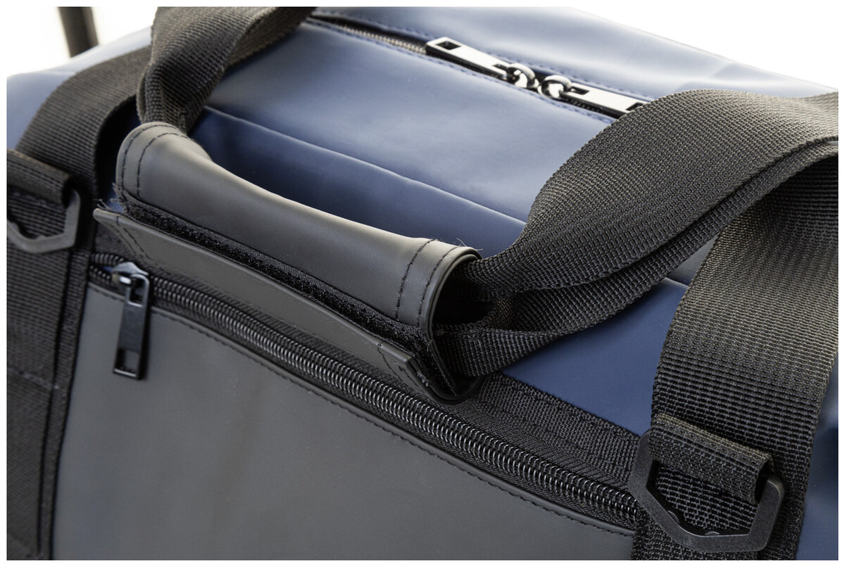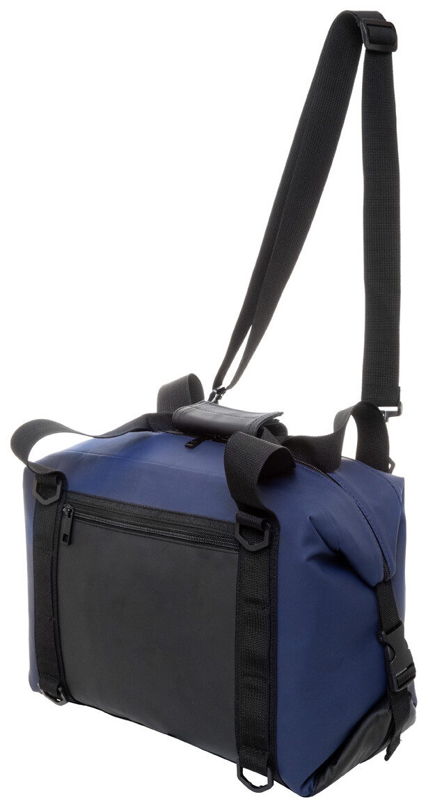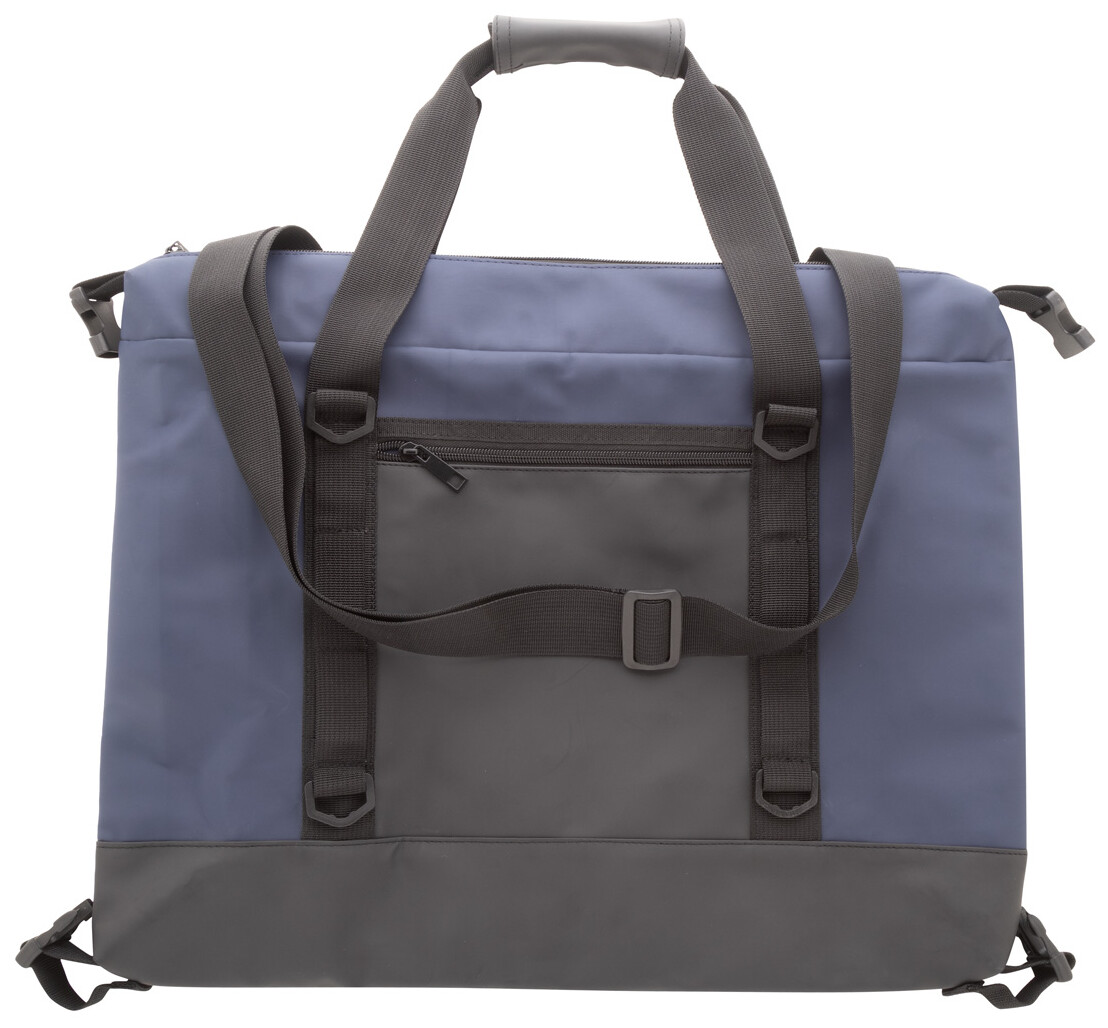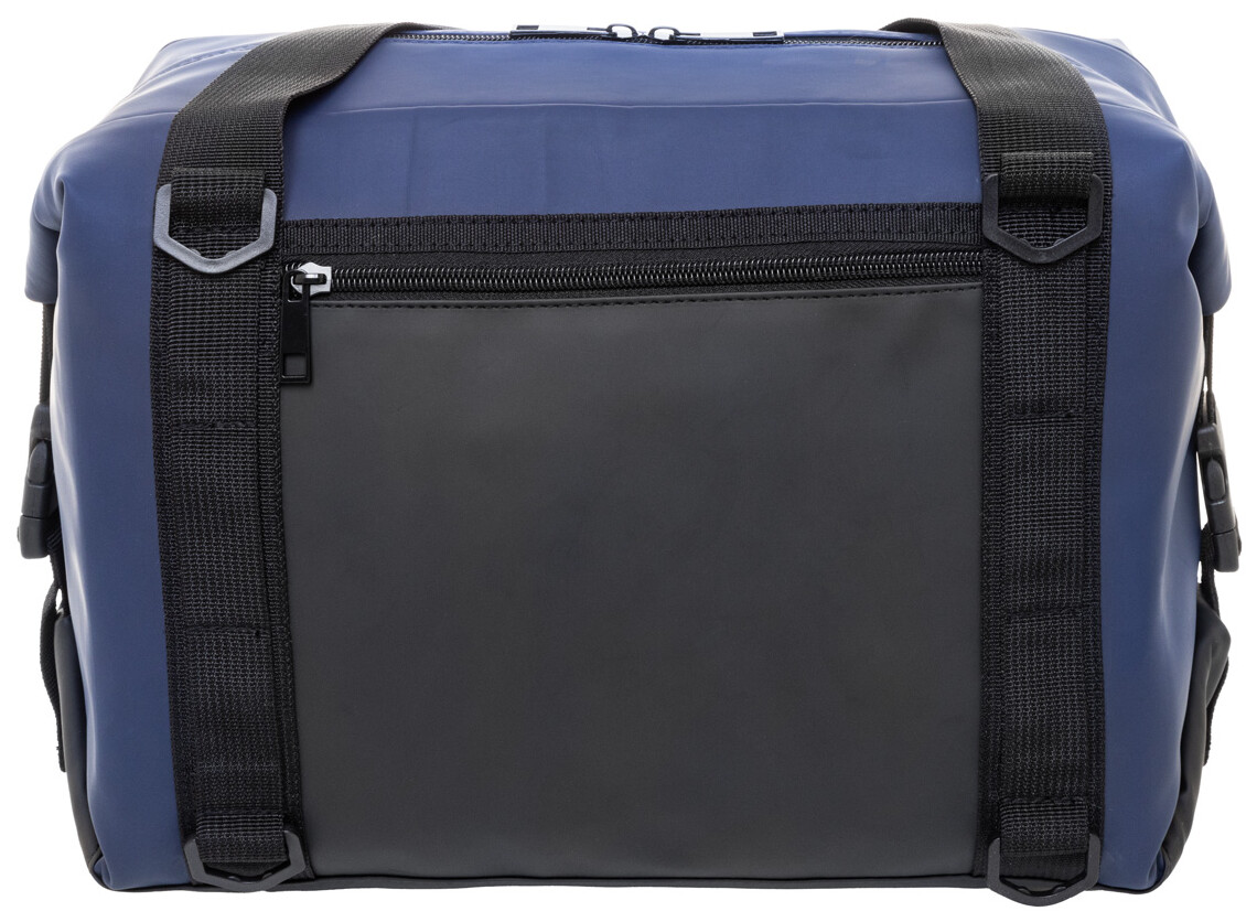 Skládací chladící taška na zip z měkké recyklované PU kůže s hliníkovou výplní a přední kapsou na zip. S bočními přezkami, držadly a nastavitelným ramenním popruhem. Tašku lze složit naplocho pro snadné skladování nebo ji během používání zajistit pomocí bočních výztuh.
