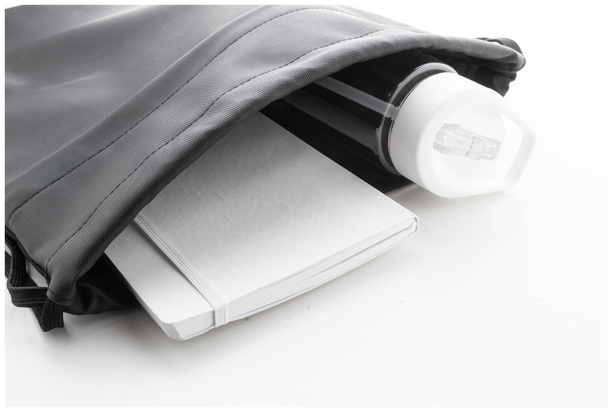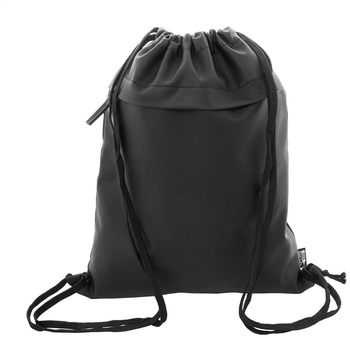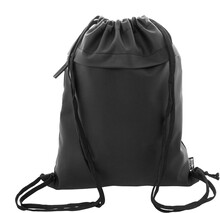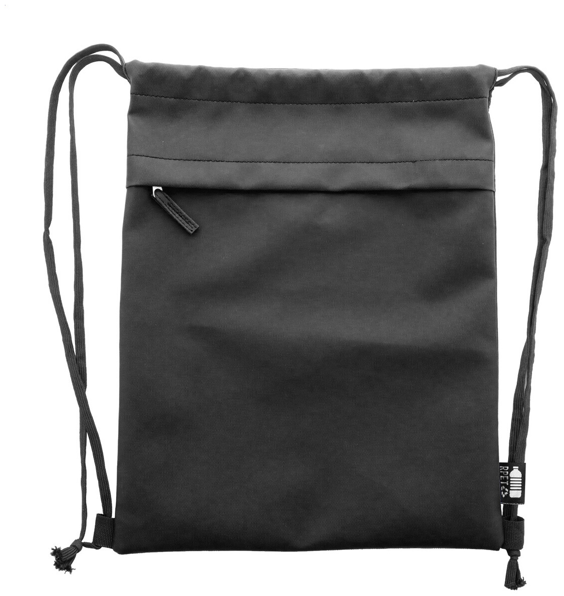 RPET vak se stahovací šňůrkou,s přední stranou potaženou PU a přední kapsou na zip. Polyester 600D RPET potažený PU s výrazným štítkem RPET.