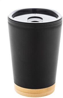 Dvoustěnný termo hrnek izolovaný PP plastem s víčkem na pití a bambusovým dnem, 260 ml.