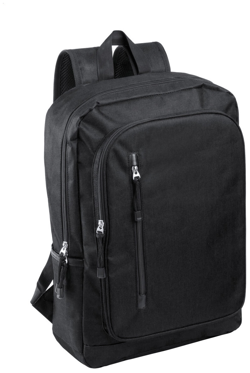 Batoh RPET s hlavním oddílem na zip, 2 předními kapsami na zip, bočními kapsami a polstrovanou přihrádkou na notebook (15"). S polstrovanými zády a ramenními popruhy. Polyester 600D RPET, s výrazným štítkem RPET.