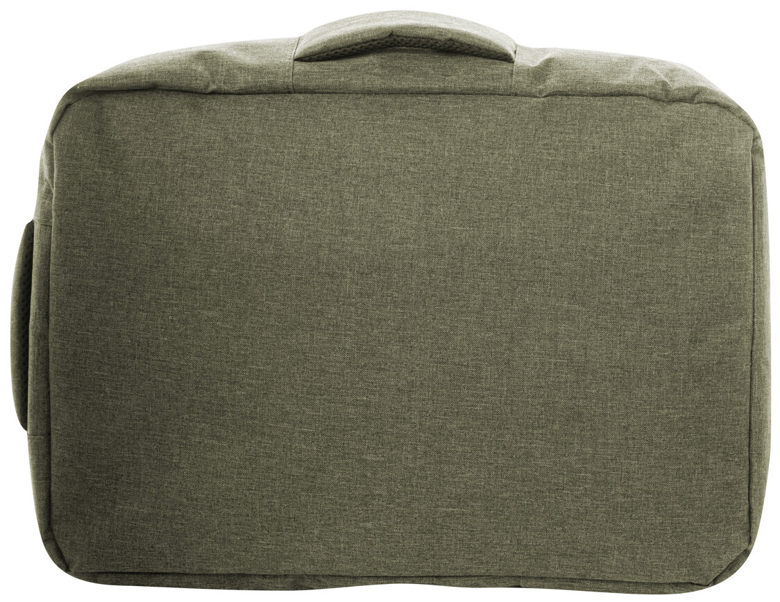Dvojfunkční RPET batoh a taška na dokumenty s přihrádkou na zip a polstrovanou přihrádkou na notebook (15"). S popruhem na vozík, polstrovanými zády a ramenními popruhy. Polyester 300D RPET, s výrazným štítkem RPET.