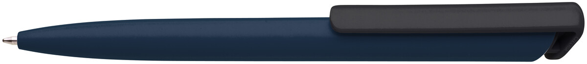 Česká propiska BOIA v minimalistickém designu tmavě modrého oválného těla s dynamickým tvarem černého masivního klipu. Tělo i klip nabízí velký prostor pro značení logem zákazníka. Materiál plast, náplň velkoobsahová, modře píšící. BOIA je vyráběna v České republice.