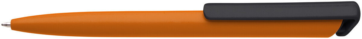 Česká propiska BOIA v minimalistickém designu oranžeho oválného těla s dynamickým tvarem černého masivního klipu. Tělo i klip nabízí velký prostor pro značení logem zákazníka. Materiál plast, náplň velkoobsahová, modře píšící. BOIA je vyráběna v České republice.