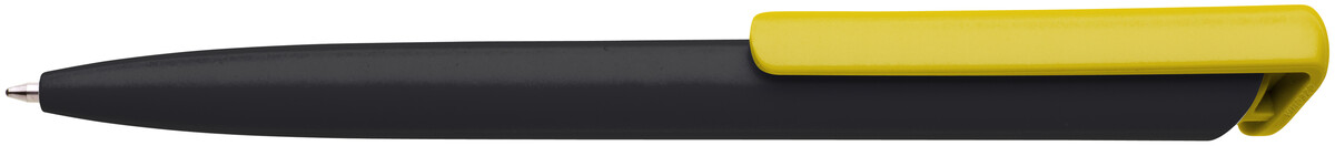 Česká propiska BOIA v minimalistickém designu černého oválného těla s dynamickým tvarem žlutého masivního klipu. Tělo i klip nabízí velký prostor pro značení logem zákazníka. Materiál plast, náplň velkoobsahová, modře píšící. BOIA je vyráběna v České republice.