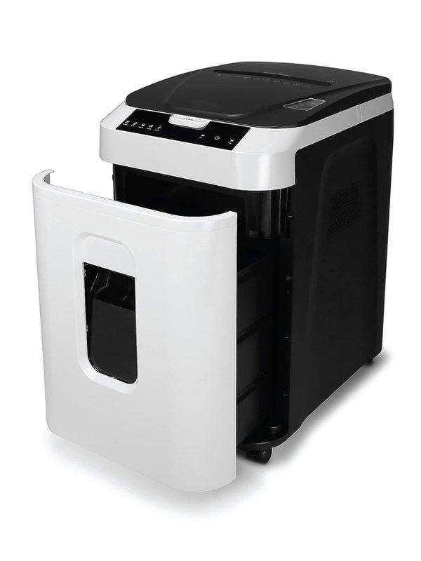 Designově velmi vyvedený stroj na kolečkách, bude vhodným pomocníkem každé kanceláře. Automatický start a stop hlídaný foto buňkou, LED display, pohotovostní režim proti přetížení stroje. Vyjímatelná nádoba na odpad pro bezproblémové vyprazdňování, optická kontrola plného koše přes průzor.