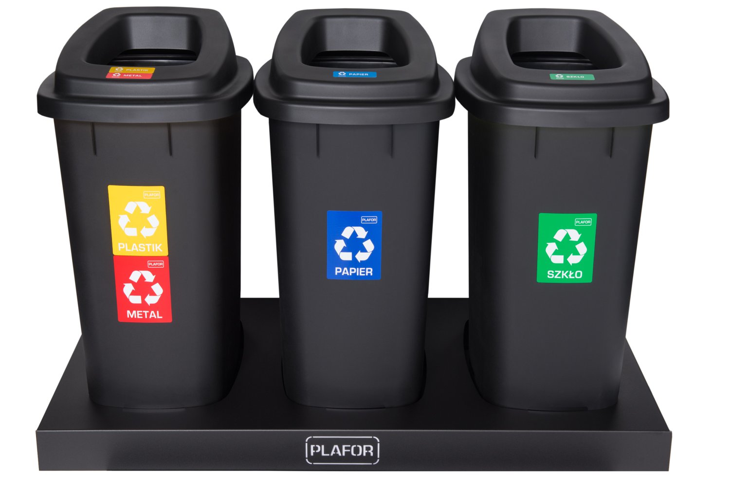 Vhodné i pro tříděný odpad, kdy využitím více nádob ukotvených v podstavcích lze vytvořit centrální třídící zóny vhodné do kuchyněk, na chodby i do větších kanceláří.