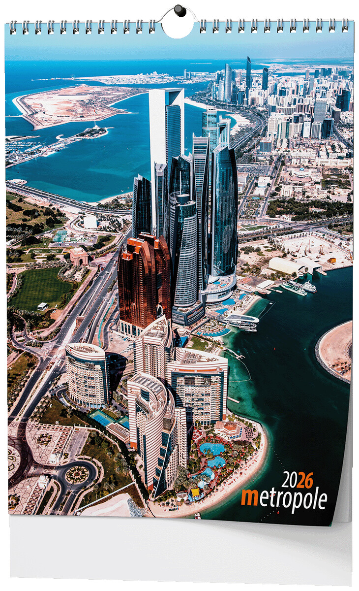 Nástěnný kalendář s krásnými obrázky světových metropolí v trendy stylu.