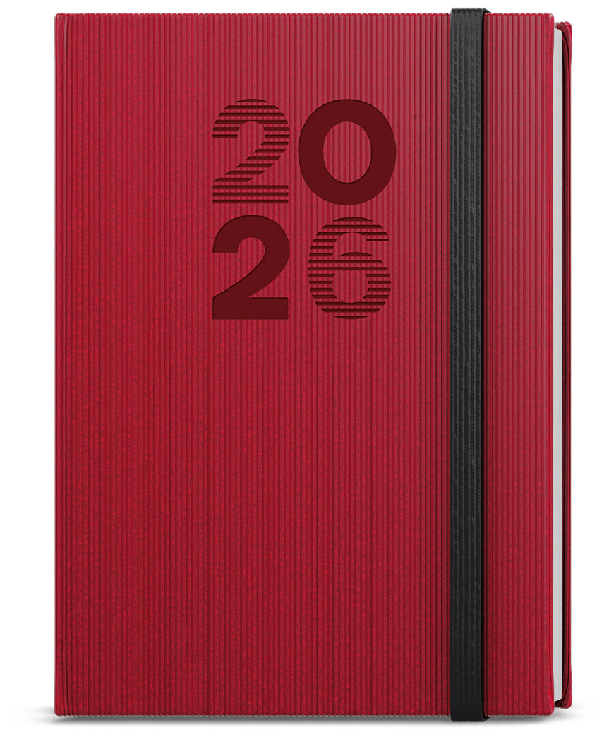 Denní diář formátu A5 vyrobený ze strukturovaného materiálu v oblíbených barvách a s gumičkou. Oblíbená grafika vnitřního bloku Vám pomůže účelně plánovat Vaše dny.