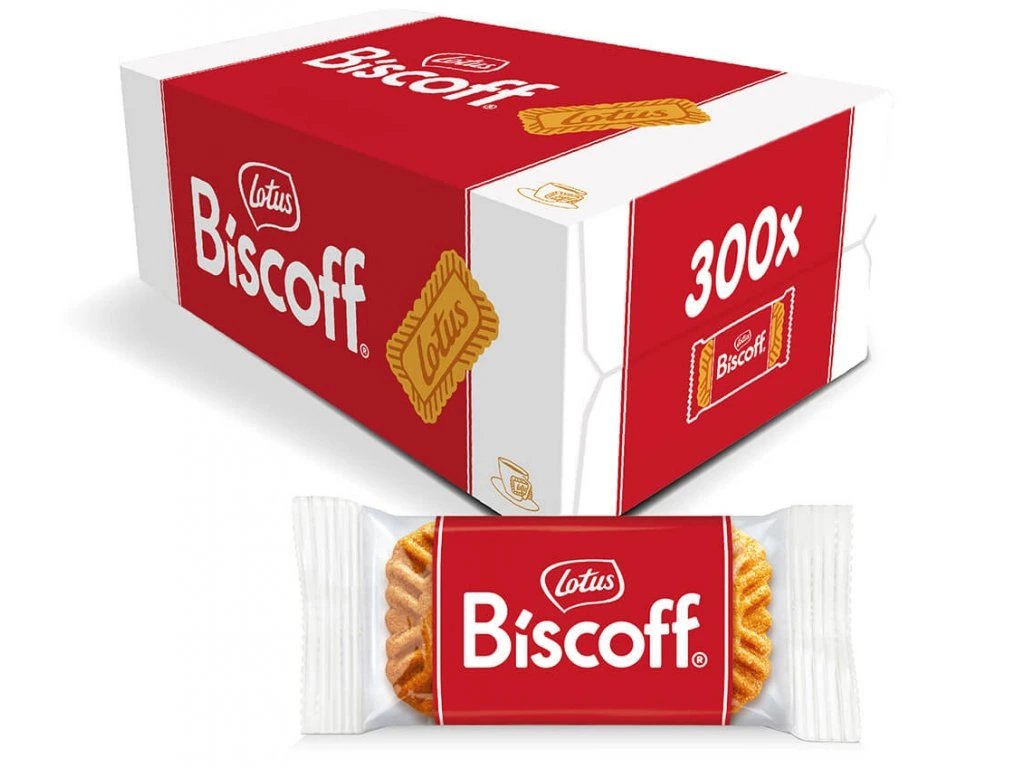 Karamelové sušenky Lotus Biscoff Welcome pack – ideální volba pro malé občerstvení během dne nebo jako stylová nabídka pro návštěvy. Balení obsahuje 300 jednotlivě balených porcí po 6,25 g.
