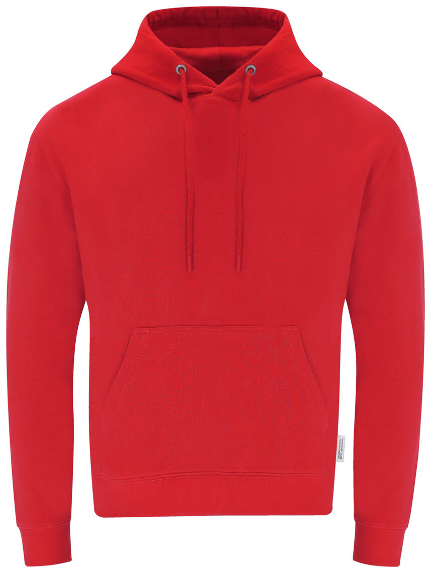 Mikina s kapucí a přední kapsou ze 60% organické bavlny a 40% RPET polyesteru, 280 g/m2.