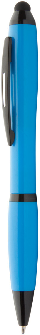 Plastové kuličkové a dotykové pero s barevným tělem a černými částmi, s modrou náplní.
