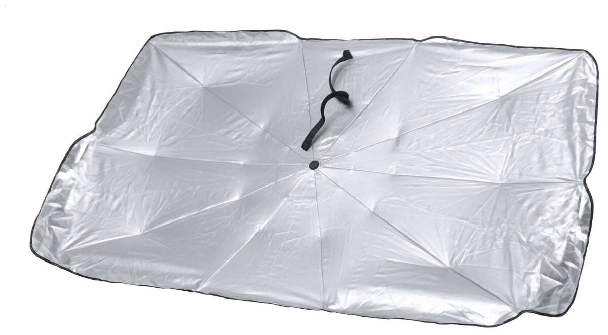 Skládací slunečník do auta na čelní sklo s kovovým rámem. V polyesterovém pouzdře.