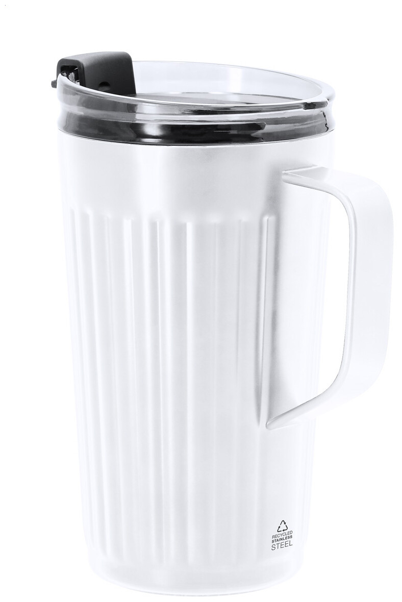 Dvoustěnný termo hrnek z recyklované nerezové oceli s víčkem na pití, 350 ml.