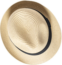 Unisex slaměný klobouk ze syntetických vláken s ozdobným páskem a nastavitelnou vnitřní stuhou.