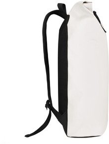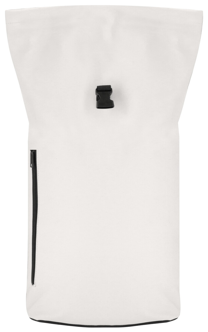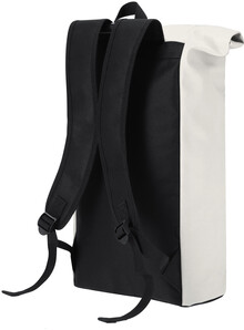 Rolovací batoh z měkké PU kůže se zapínáním na přezku, polstrovaná přihrádka na notebook (15"), polstrovaná záda a ramenní popruhy.