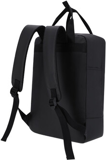 Batoh z měkké PU kůže s přihrádkou na zip a předními kapsami, polstrovanou přihrádkou na notebook (15") a tablet (10"), polstrovaná záda a ramenní popruhy.