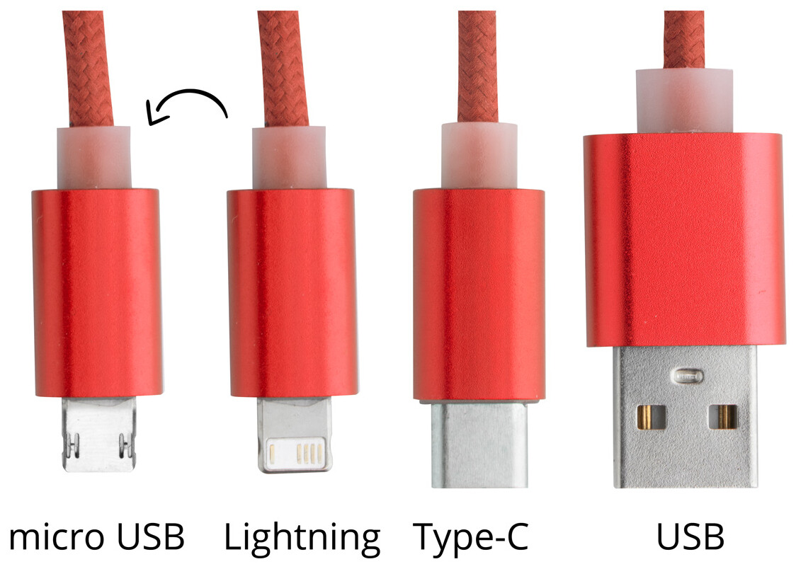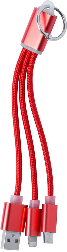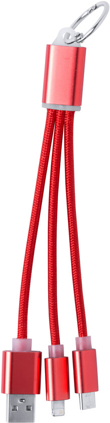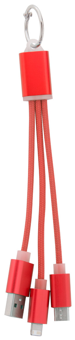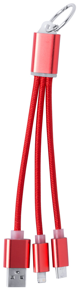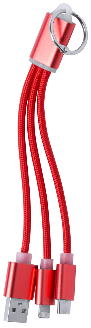 Hliníkový USB nabíjecí kabel s přívěškem na klíče. S micro USB, USB-C a Lightning konektory.