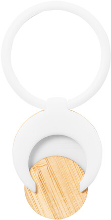 Kulatý ABS plastový držák na mobil se samolepicí spodní stranou a bambusovou mincí do nákupního vozíku.