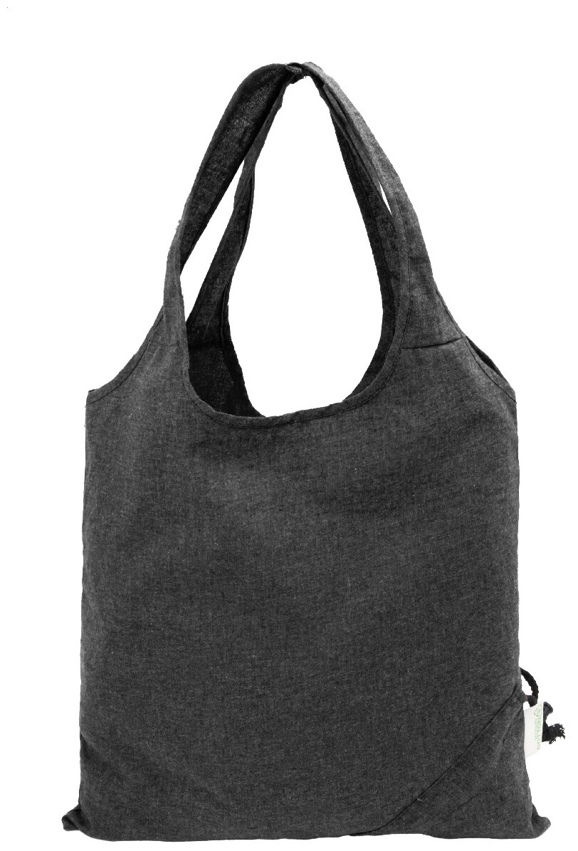 Skládací nákupní taška ze 70 % recyklované bavlny a 30 % polyesteru RPET, 140 g/m2. S výrazným štítkem z recyklované bavlny.
